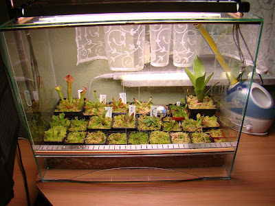 I have to say that the days of that setup will be over soon. Currently I got rid of most of my Nepenthes species and decided to focus on Heliamphoras. My bigger terrarium (described in my last post) is now crammed with new pitcher plants, which grow under my self-designed LED grow panel. The results after 2 months of using it are very encouraging...but that's something I'd like to talk about later. Anyways, I managed to buy some very interesting species for very low prices. They were definitely far from a good condition when they arrived...but after 1 or 2 months they're all finally starting to grow well! My "Tepui" project is developing faster and faster. New terrariums under construction, basement conservatory is being prepared...I'll share the news soon!